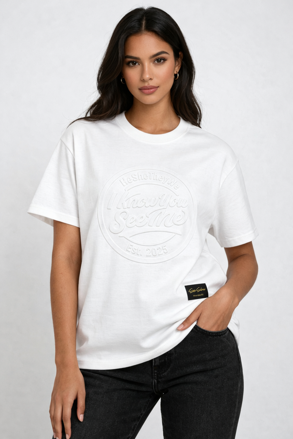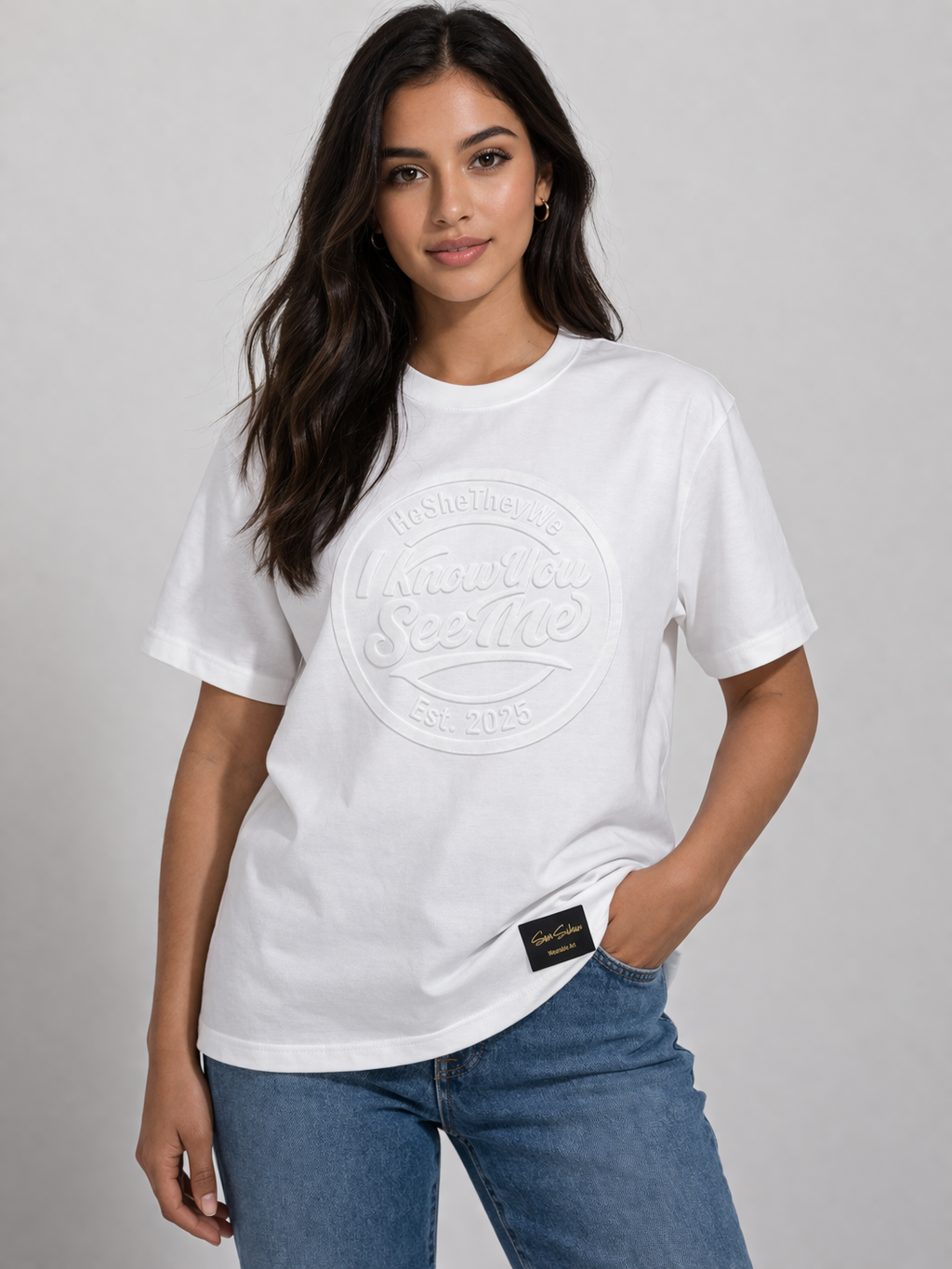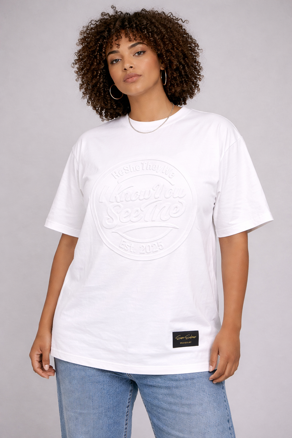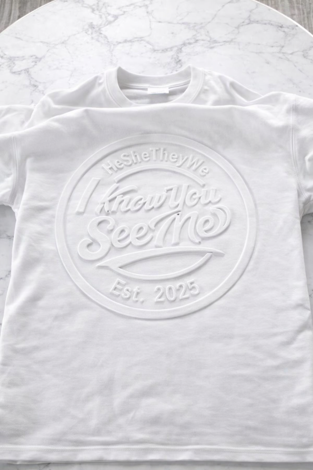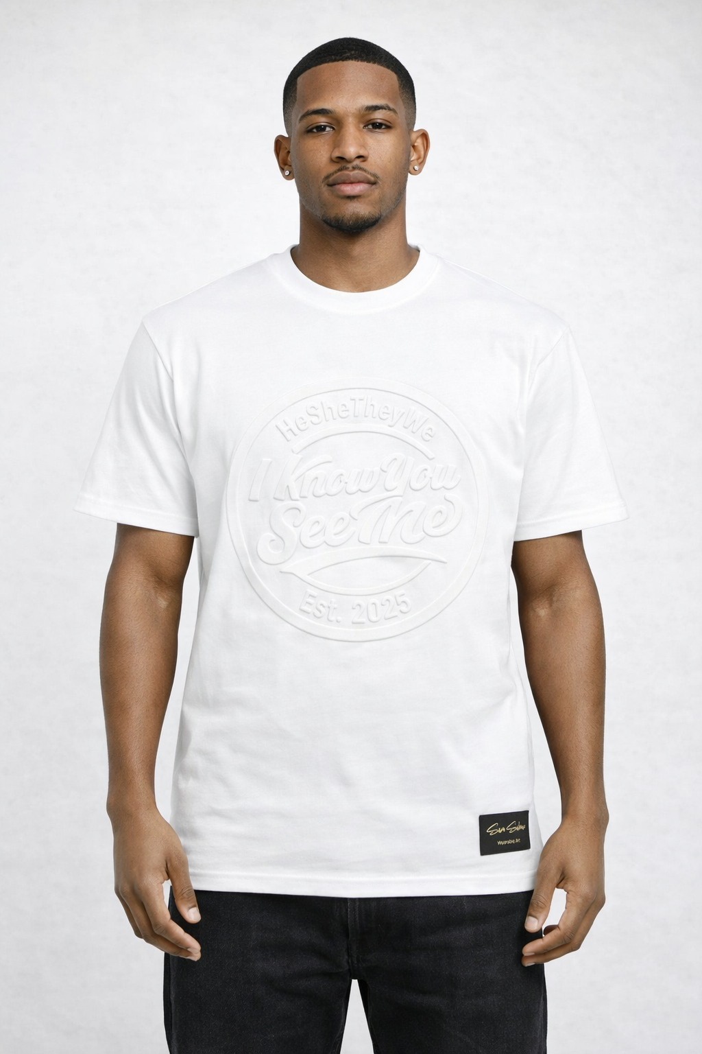 I Know You See Me – 100% Cotton Embossed White T-Shirt