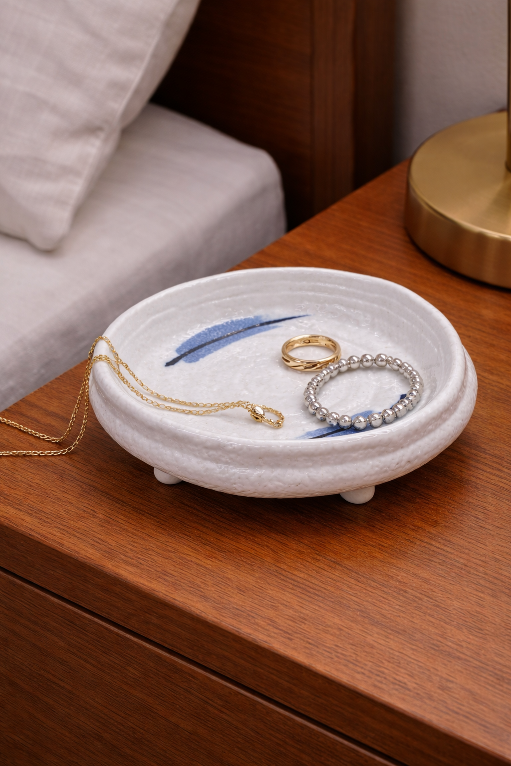 Beauty at home or in the office. This trinket tray is useful for jewelry when doing dishes, or at your vanity. Great for the kitchen for prepping ingredients and spices, charcuterie, and for sauces. Can be used to keep spare change, or in the office for supplies.